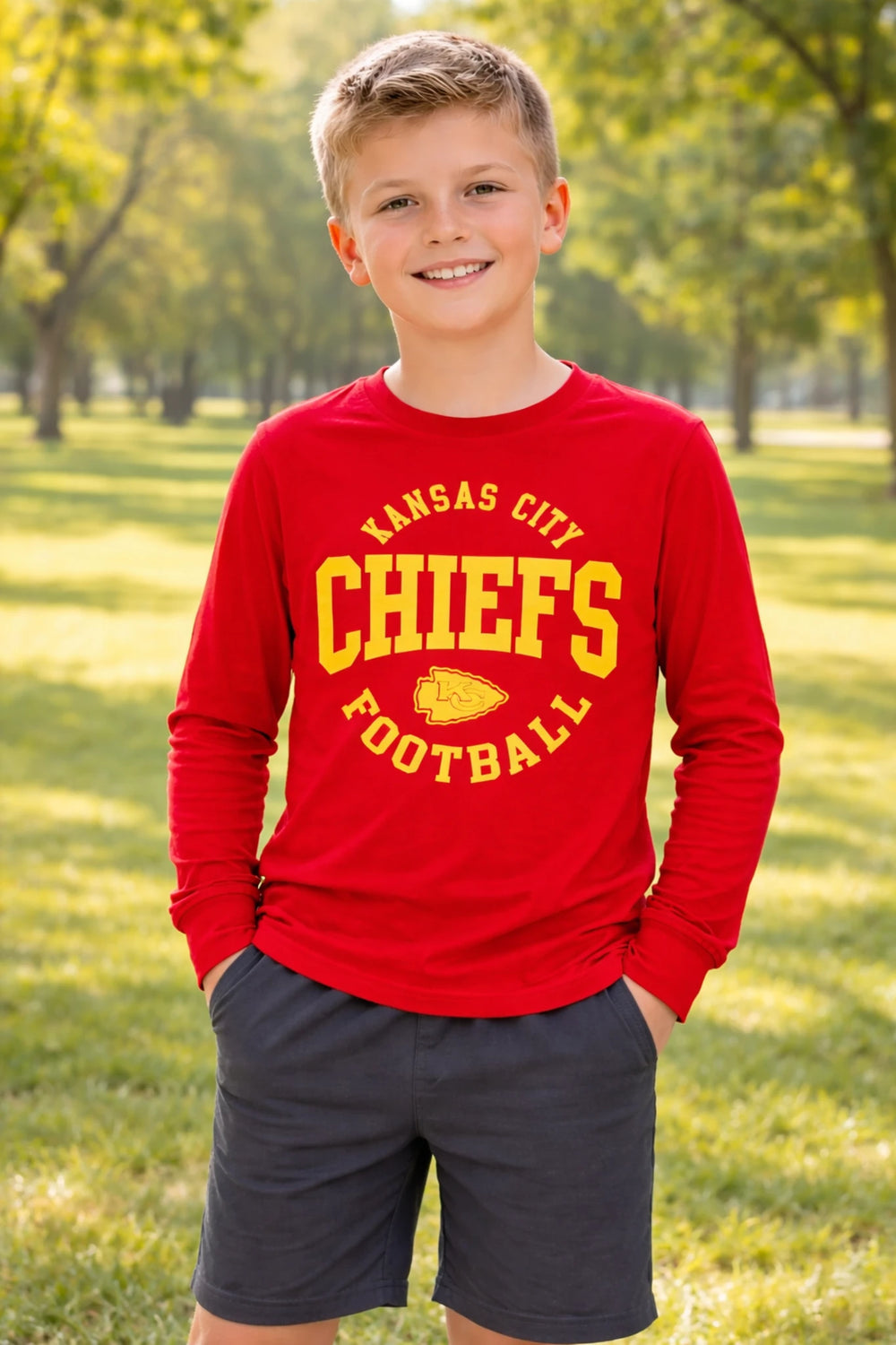 his kids’ sports-inspired T-shirt is designed for everyday comfort and style. It features a bold and eye-catching team-style graphic that gives a sporty and confident look.