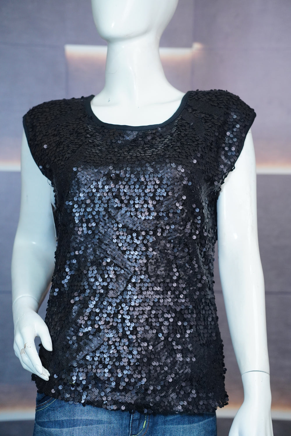 Trendy black sleeveless top with star detailing. Perfect for modern casual looks and summer wear.